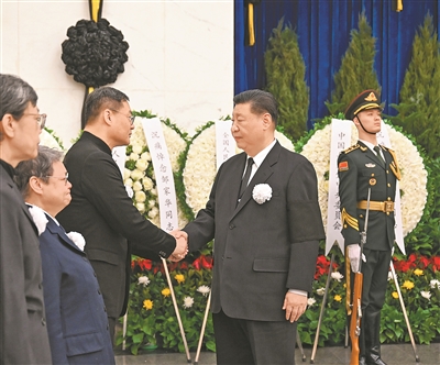 上午9时30分许,习近平、李强、赵乐际、王沪宁、蔡奇、丁薛祥、李希、韩正等,在哀乐声中缓步来到邹家华同志的遗体前肃立默哀,向邹家华同志的遗体三鞠躬,并与邹家华同志亲属一一握手,表示慰问。