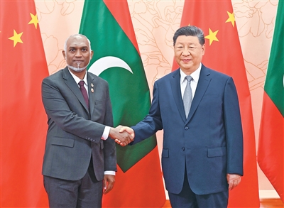本报天津8月31日电 (记者王远、宦翔)8月31日上午,国家主席习近平在天津迎宾馆会见来华出席2025年上海合作组织峰会和纪念中国人民抗日战争暨世界反法西斯战争胜利80周年活动的马尔代夫总统穆伊兹。