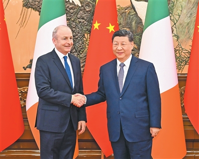 马丁表示,爱尔兰和中国有着深厚长久的友谊,两国经贸合作不断加强,人文交流日益密切。2012年习近平主席成功访爱,为近年来爱中互惠战略伙伴关系打下坚实基础。中国卓有成效制定并实施国家长远发展战略,取得重大成就,令人敬佩。爱尔兰坚定奉行一个中国政策,致力于加强和发展两国互惠战略伙伴关系,愿同中方深化贸易、投资、科技、生物医药、可再生能源、人工智能、教育等领域合作。中国在国际事务中发挥着不可或缺的重要作用,为维护联合国权威、促进世界和平作出积极贡献。任何国际争端的解决都应遵守国际法。爱尔兰愿同中方保持密切沟通协调,维护国际法,坚持自由开放贸易,促进世界繁荣稳定。欧中关系保持稳定发展十分重要,爱方愿为推动欧中关系健康发展发挥建设性作用。